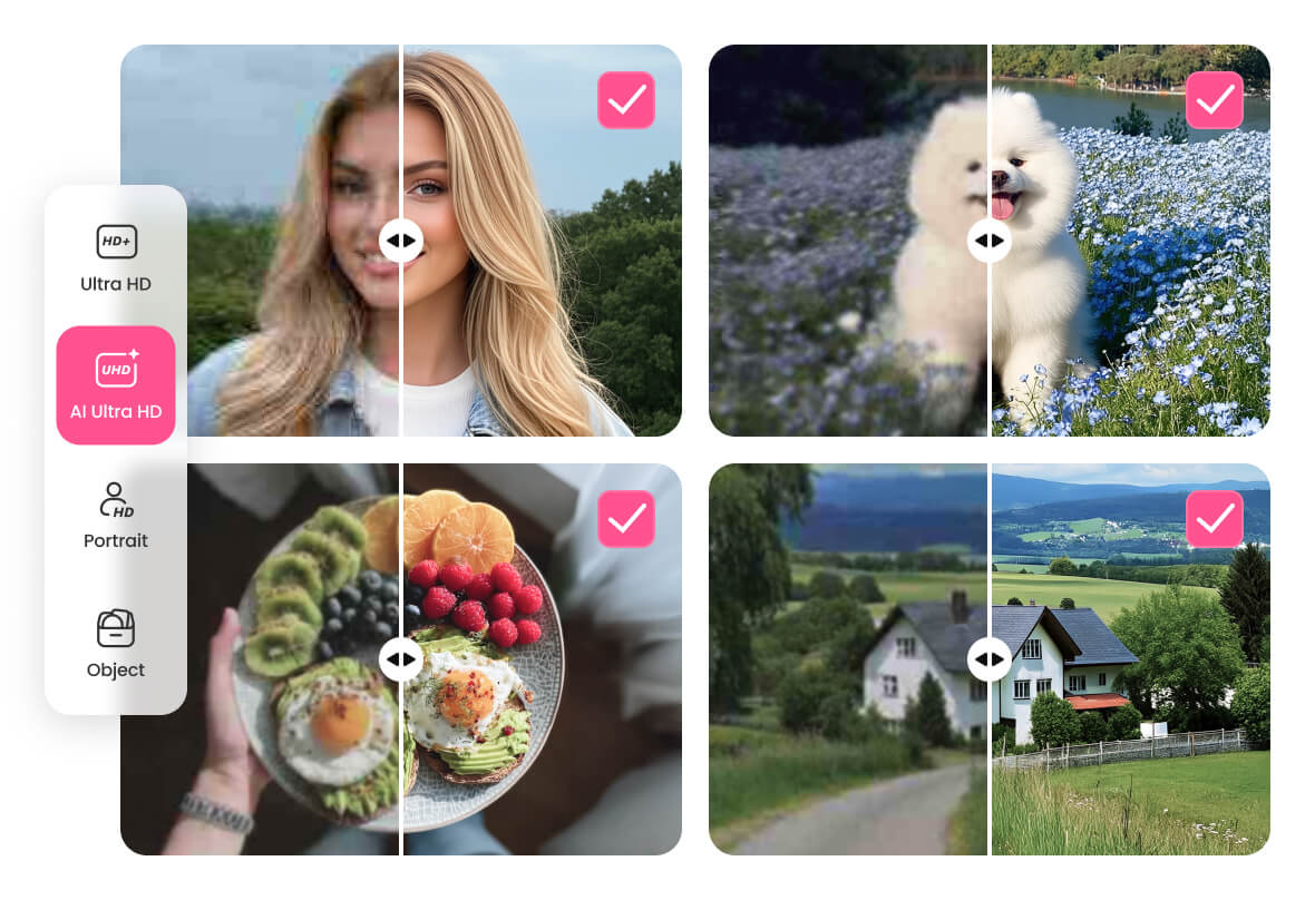 Our bulk image upscaler is an ai image enhancer that lets you enhance image quality for many photos at once. It increases resolution to 4K and sharpens details, making it a key tool for professional batch ai photo editing.