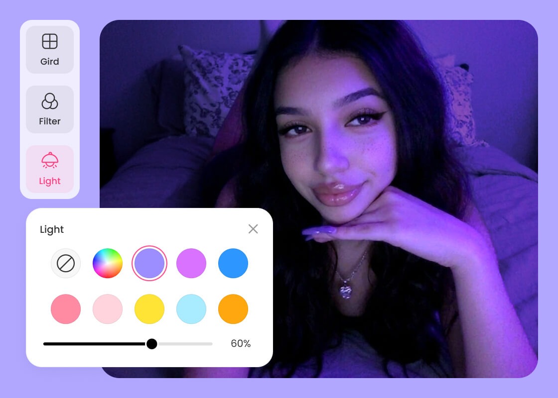 Captura fotos con una cámara online, añade marcos y stickers y expórtalas como una tira fotográfica.