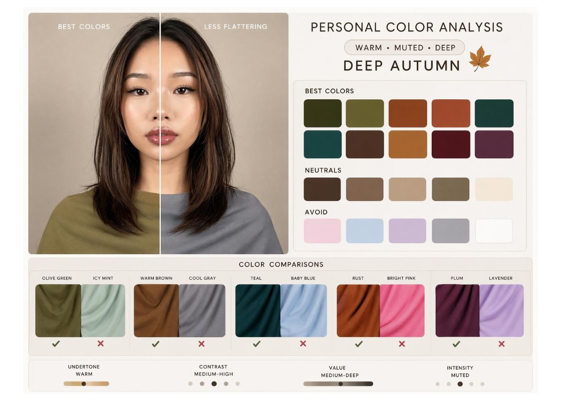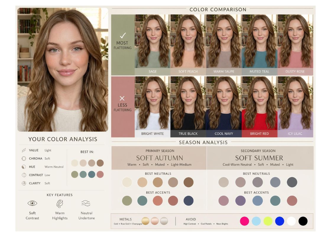 Rasakan tes personal color instan dengan GPT Image 2.0. Dapatkan analisis palet warna detail dan temukan warna pakaian serta makeup yang paling pas sebelum belanja berikutnya.