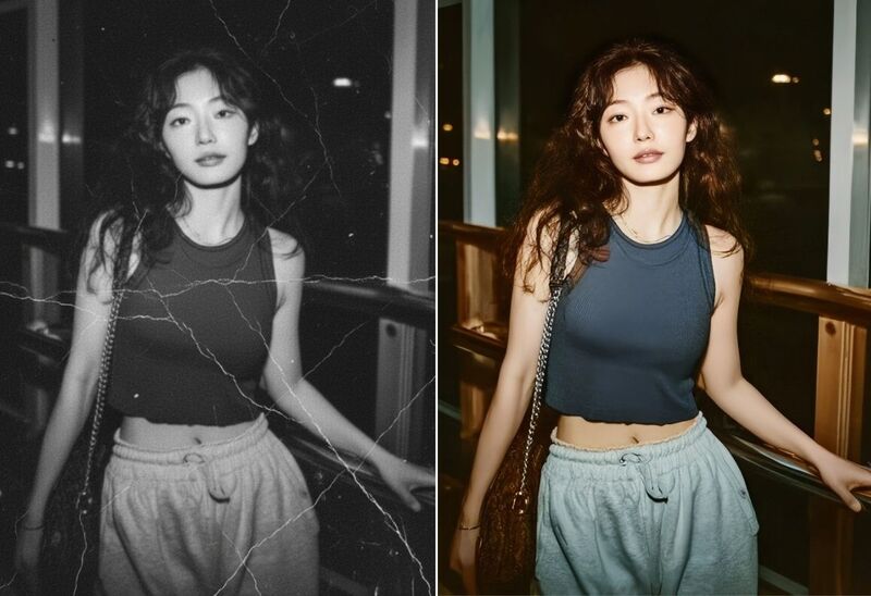 Perbaiki foto lawas yang sudah pudar dengan BeautyPlus. Gunakan alat AI kami untuk langsung mewarnai foto hitam putih, atau untuk melakukan perbaikan praktis untuk menghilangkan goresan, robekan, atau ketidaksempurnaan lainnya. AI ini meningkatkan kejernihan dan ketajaman foto lawas dan menonjolkan detailnya.