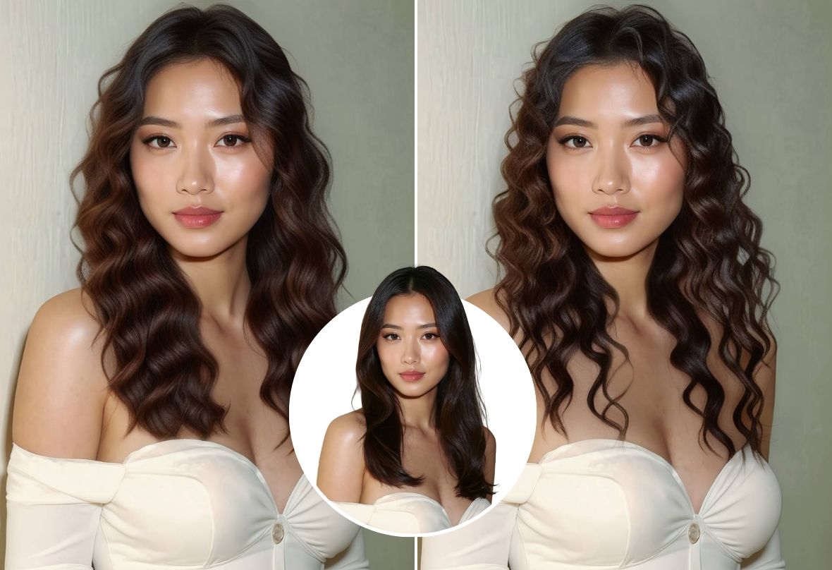 물론입니다! 결과는 충분히 자연스럽습니다. 또한 숱이 적어 보이는 부분, 곱슬머리, 지저분한 잔머리까지 보정해 사진에서 더 매끈하고 완성도 높은 헤어 연출이 가능합니다.