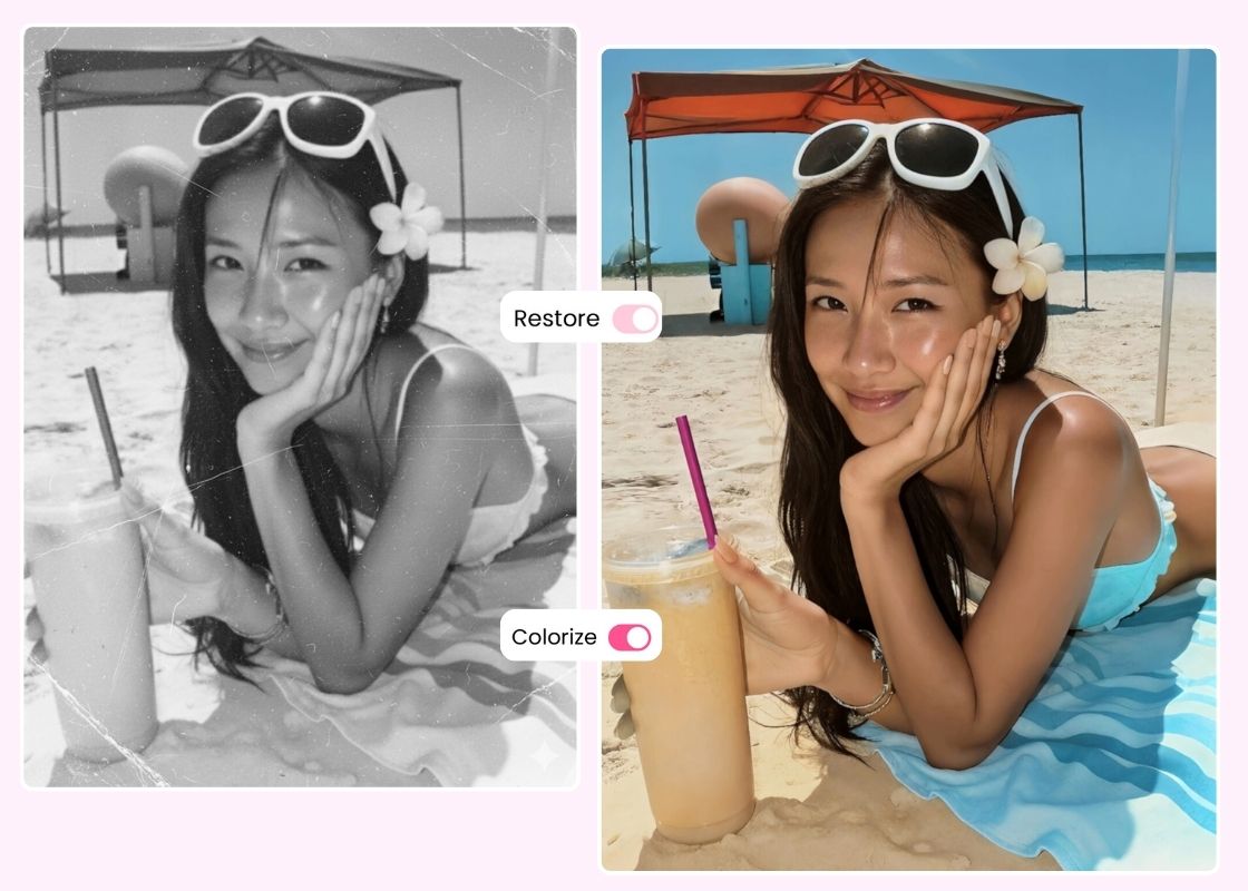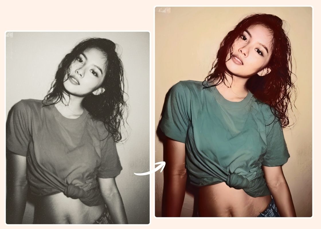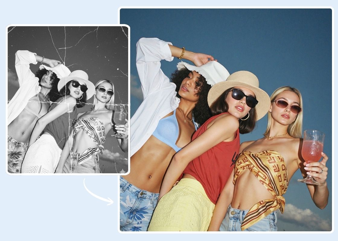 Instantly transform a black and white or faded photo into a vibrant color photo. Just upload and tap to restore old photo to new photo with AI photo colorizer.